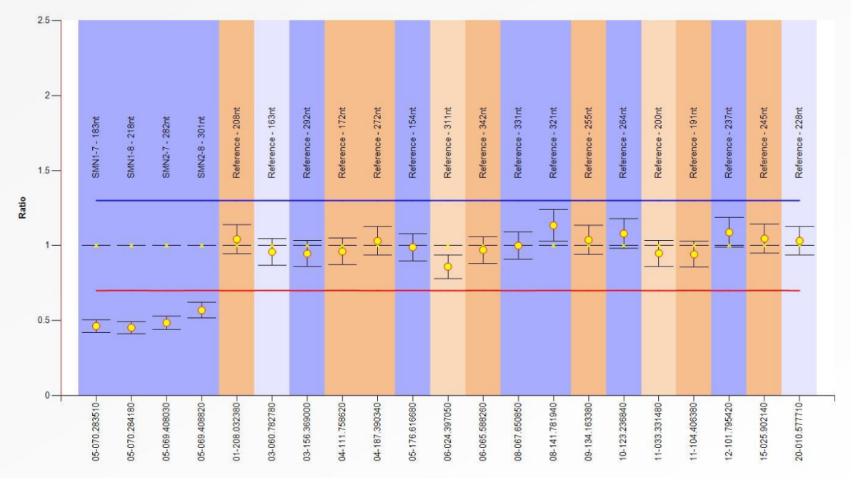 | Description | Spinal muscular atrophy (SMA) is an autosomal recessive neuromuscular disease characterized by progressive muscle weakness and atrophy caused by the degeneration of motor neurons in the anterior horn of the spinal cord. The disease is the number one fatal genetic disease in infancy, and it is estimated that there is one case in every 10,000 live births; the carrier rate of the general population is about 1/50, and the carrier rate of the domestic population is about 1/42. |
