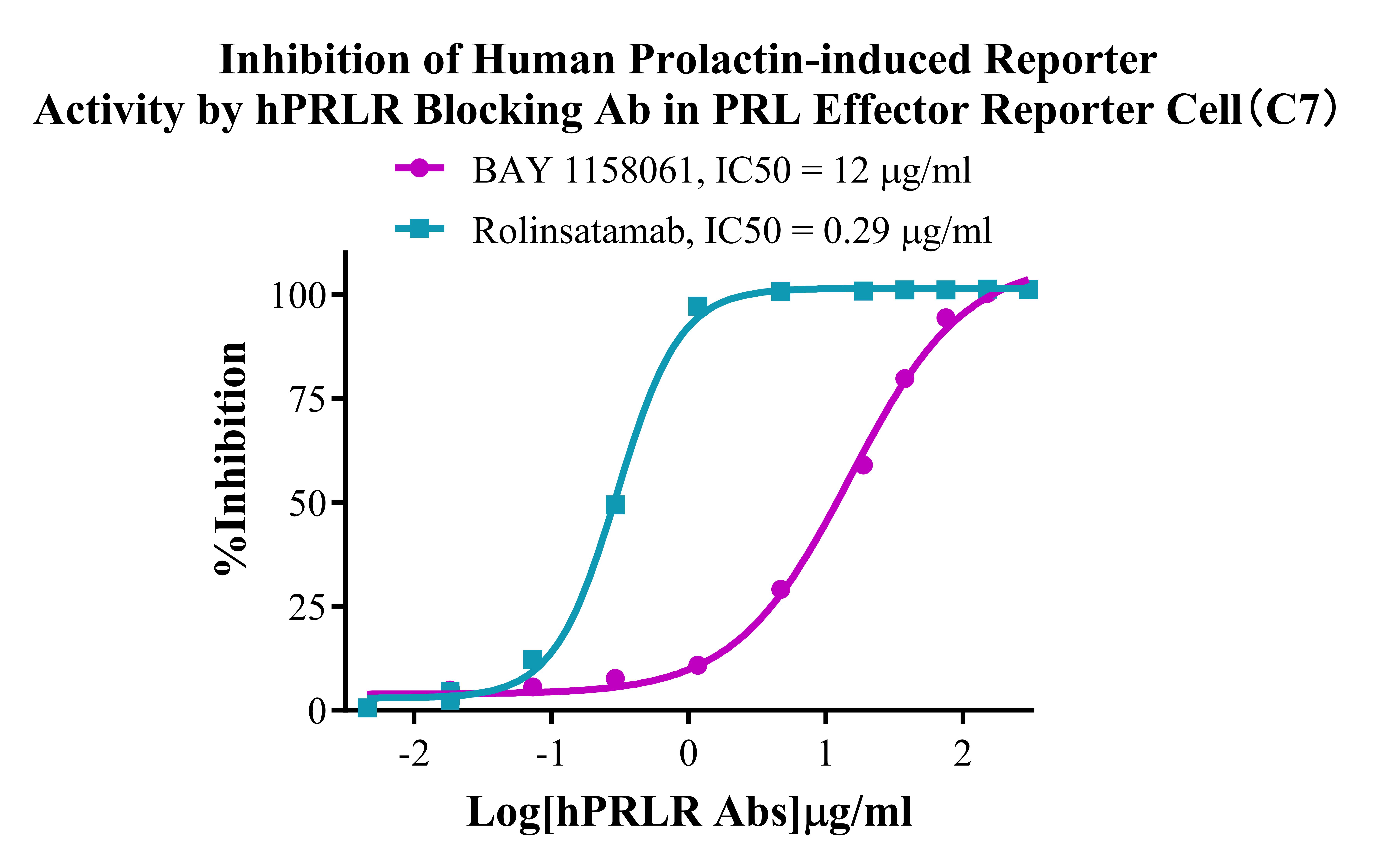Figure 3. Inhibition of Human Prolactin-induced Reporter Activityby hPRLR Blocking Ab in PRL Effector Reporter Cells(C7). |