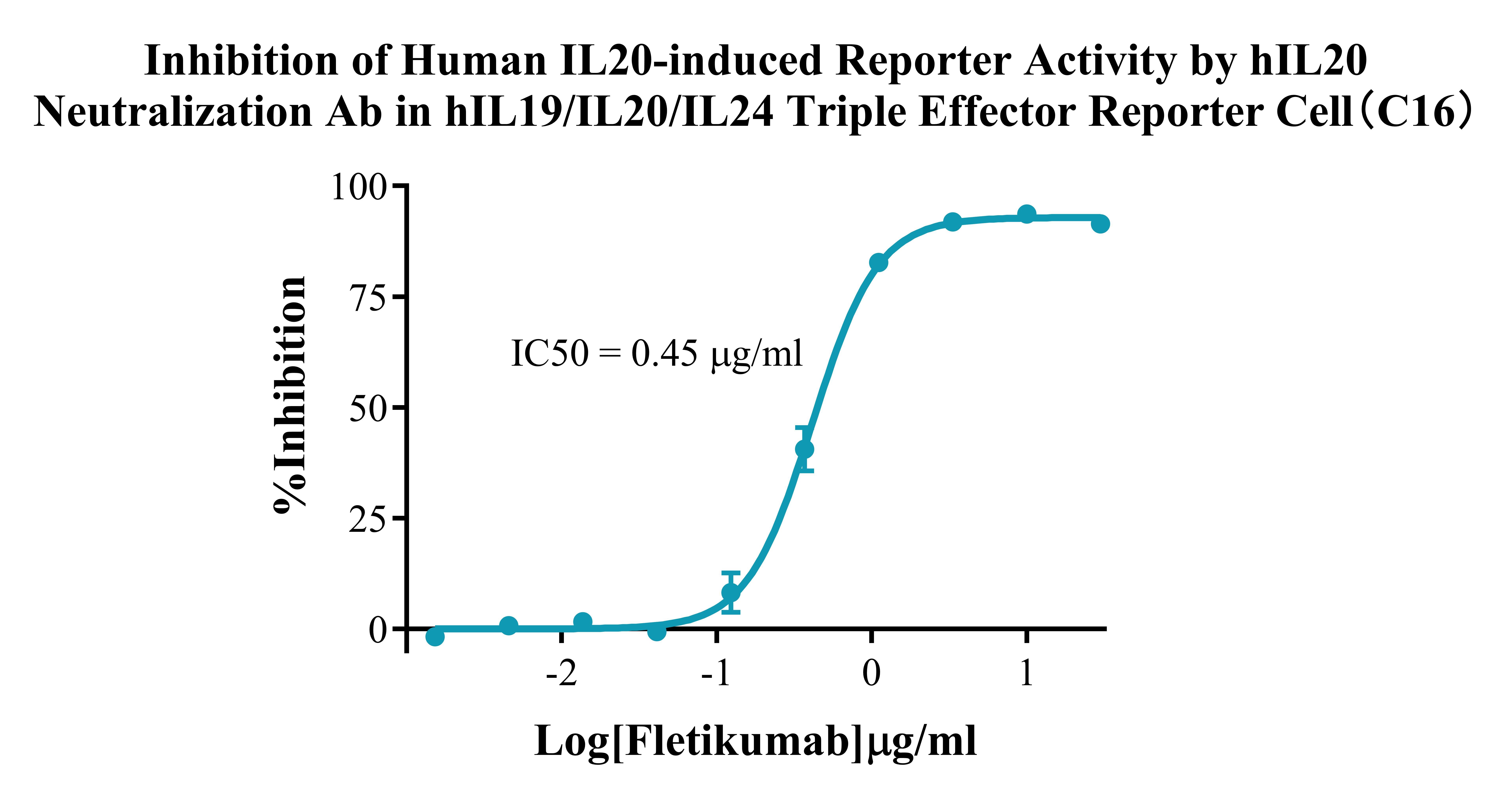 IV. Representative Data![]() Figure 2. Dose Response of Ligands in hlL19/IL20/IL24 Triple Effector Reporter Cell (C16). ![]() Figure 3. Inhibition of Human lL20-induced Reporter Activity by hlL20 Neutralization Ab in hlL19/lL20/IL24 Triple Effector Reporter Cell (C16). |