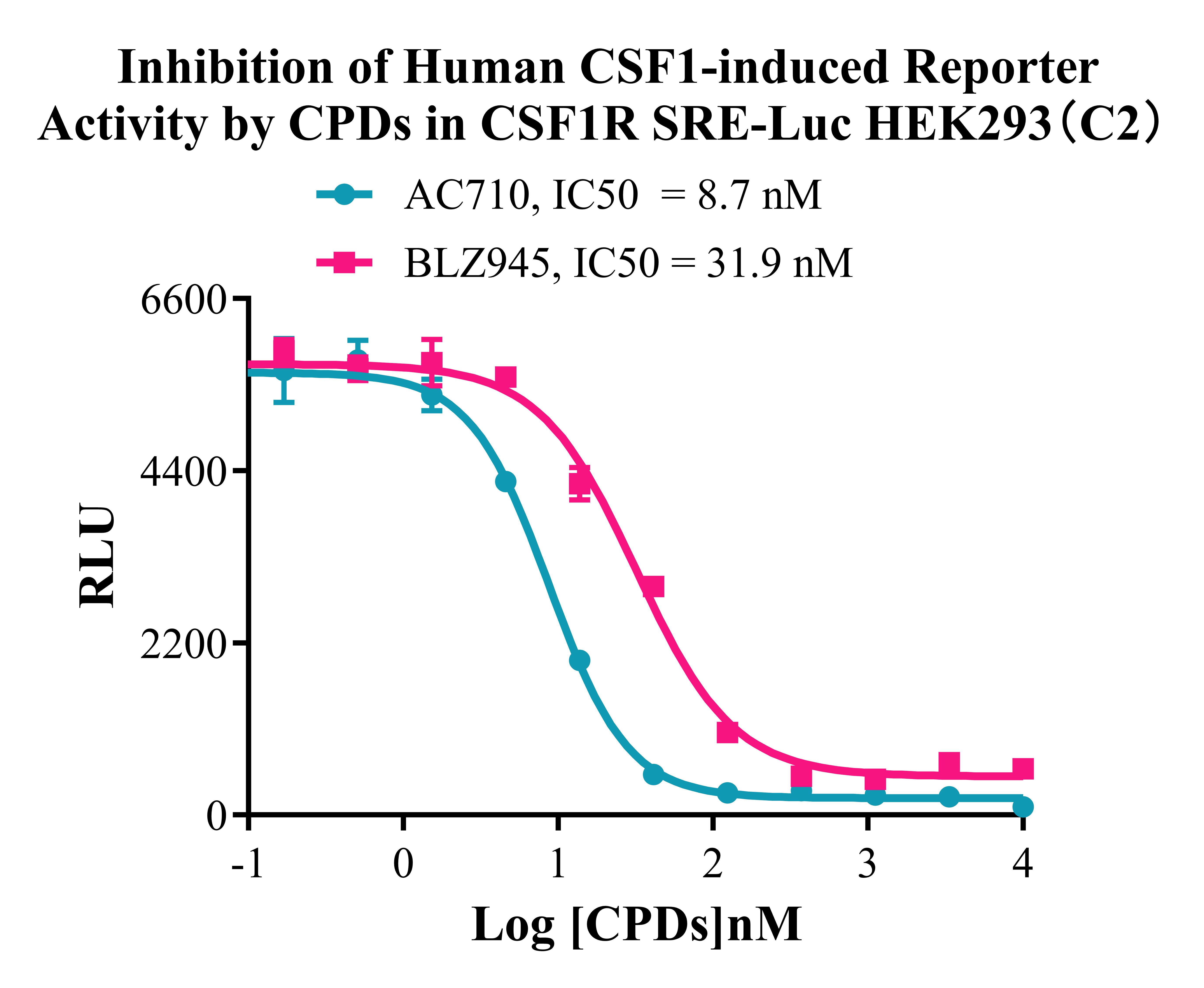 Figure 4. Inhibition of Human CSF1-induced Reporter Activity by CPDs in SRE-Luc HEK293(C2).