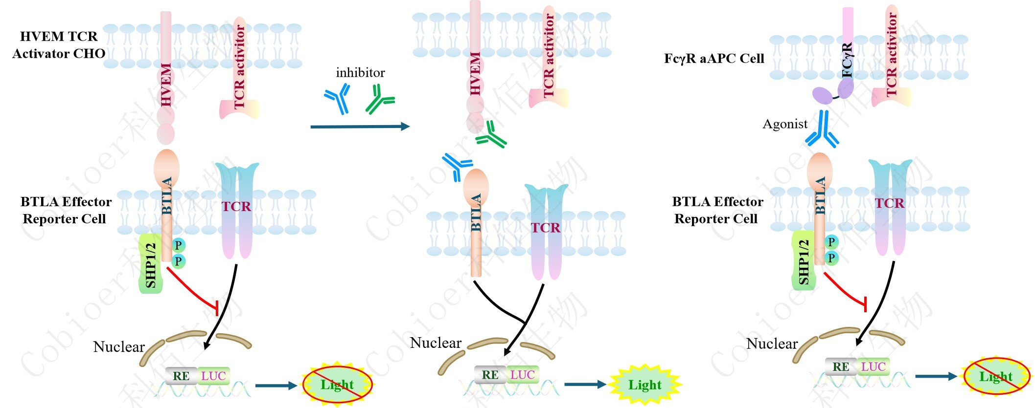 BTLA Effector Reporter Cell 報(bào)告基因藥靶模型很好的模擬了體內(nèi) BTLA 的信號(hào)轉(zhuǎn)導(dǎo)過(guò) 程,原理見(jiàn)下圖所示。![]() Figure 1. BTLA Effector Reporter Cell 模型原理圖 |