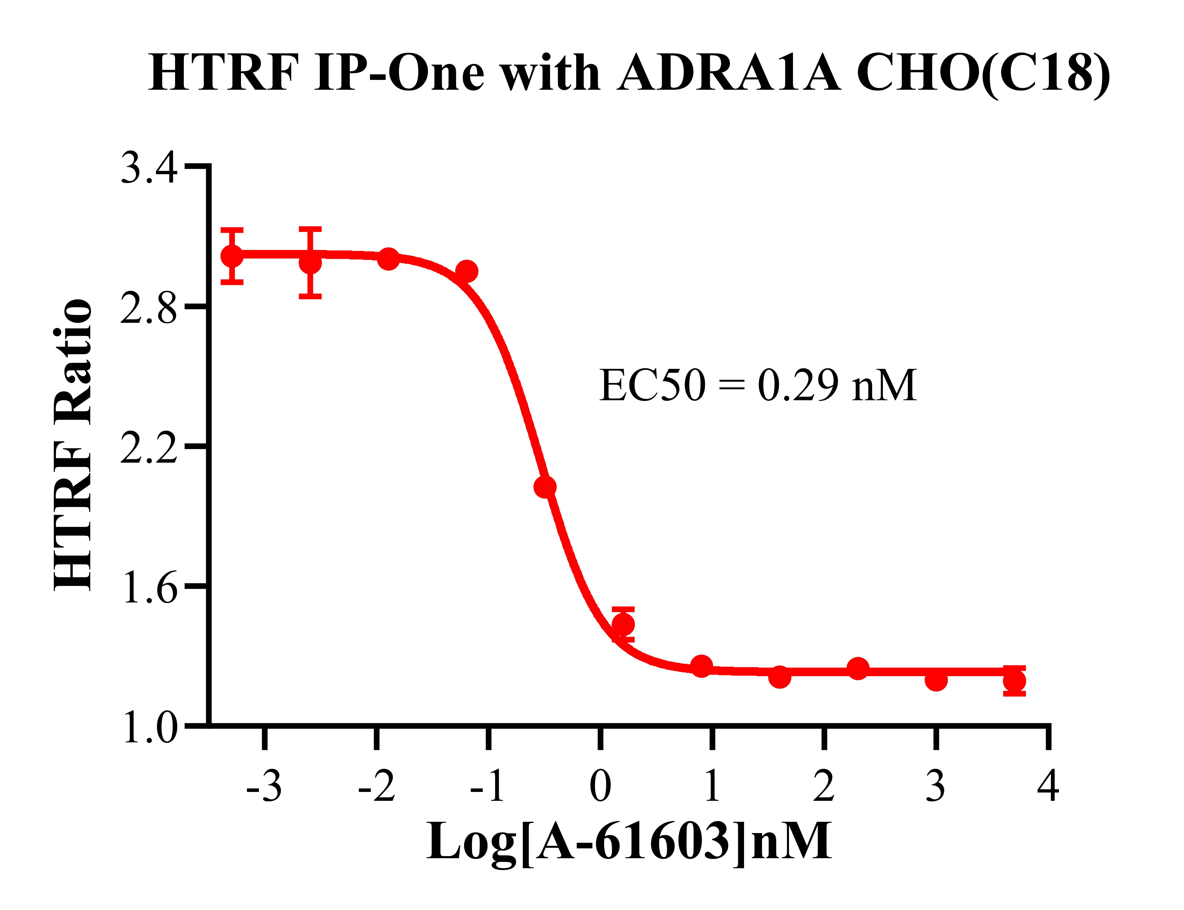 ADRA1A 還可以通過 Gq 蛋白的信號通路,調(diào)控 IP1 的升高。ADRA1A 與配體結(jié)合, 導(dǎo)致 Gαq 亞基的激活,觸發(fā) PLC-γ,從而產(chǎn)生兩個第二信使:IP3 和 DAG,它們參與細(xì)胞內(nèi)鈣動員。由于 IP3 在代謝上不穩(wěn)定,因此測量通路激活的替代標(biāo)志物 IP1 作為檢測標(biāo)準(zhǔn)。