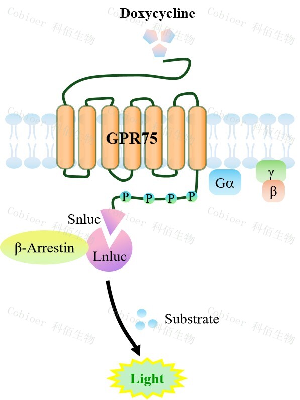 Inducible GPR75 β-Arrestin CHO 報告基因藥靶模型很好的模擬了體內(nèi) GPR75/β-Arrestin 的信號轉(zhuǎn)導(dǎo)過程,原理見下圖所示。![]() Figure 1. Inducible GPR75 β-Arrestin CHO 細(xì)胞模型原理圖 |