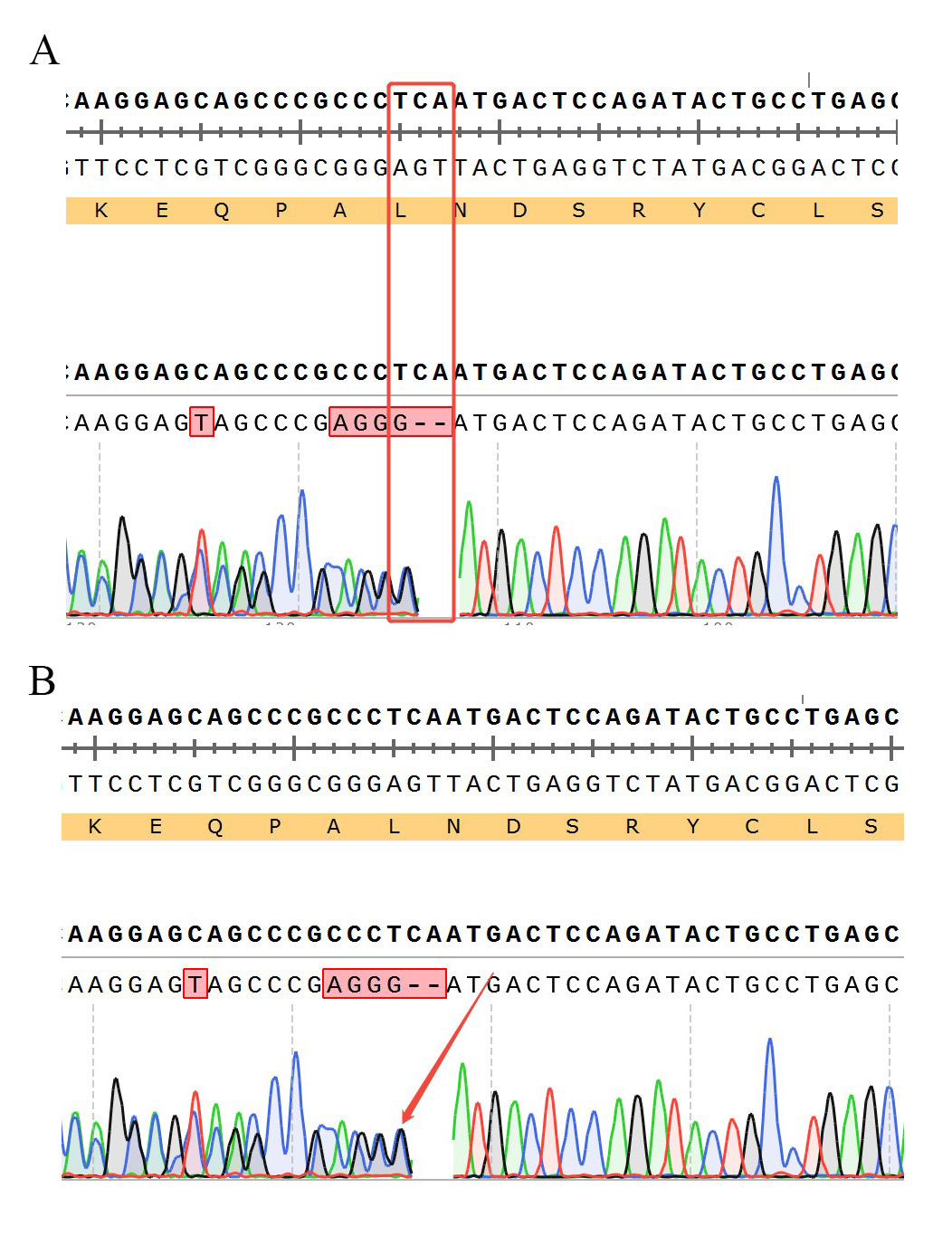 ![]() Figure 6. TRBC1 KO 的測序結果 A:chr7-142791898-TCA-C (TRBC1:p.L68Pfs*2)