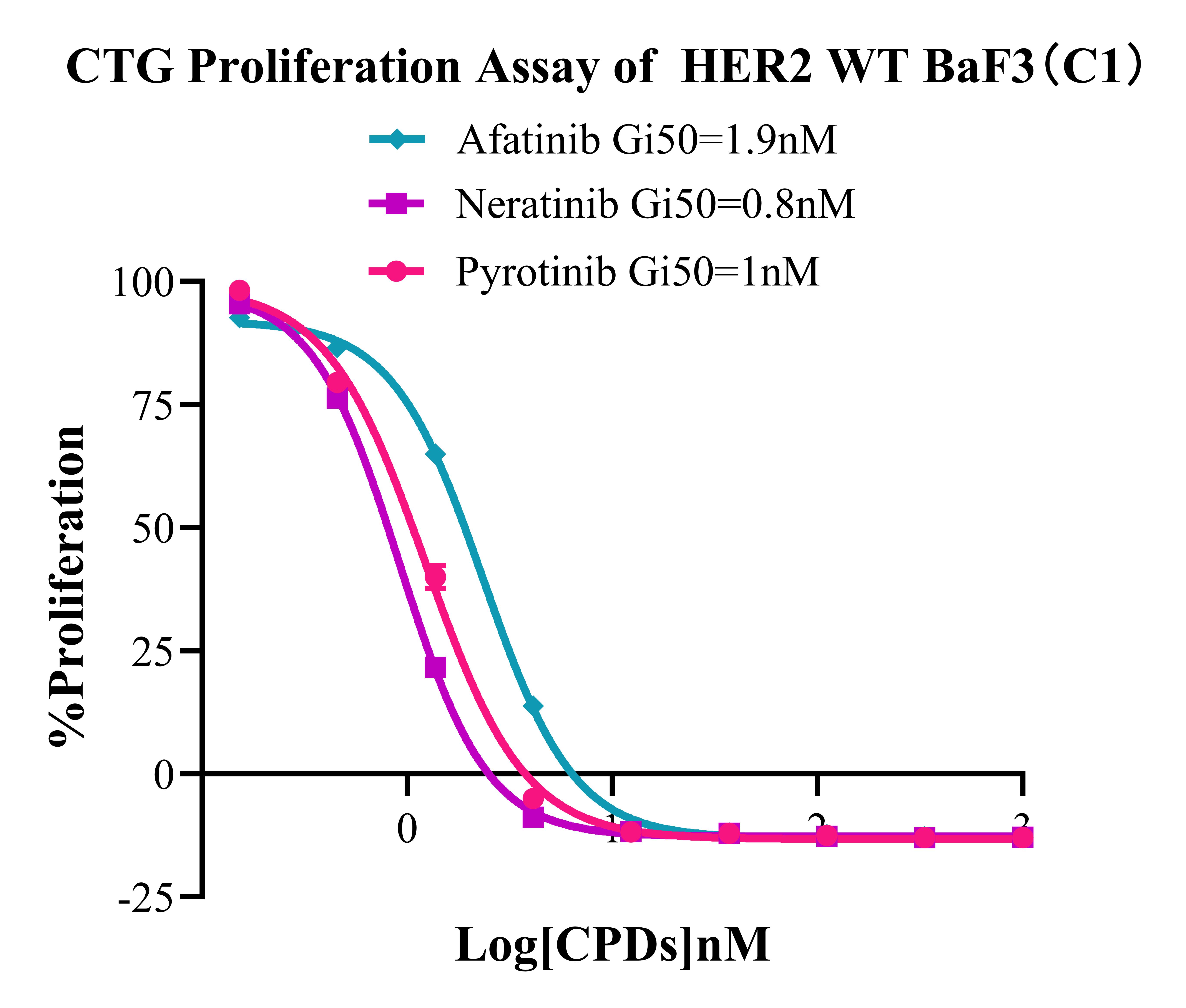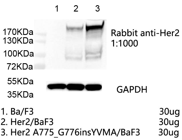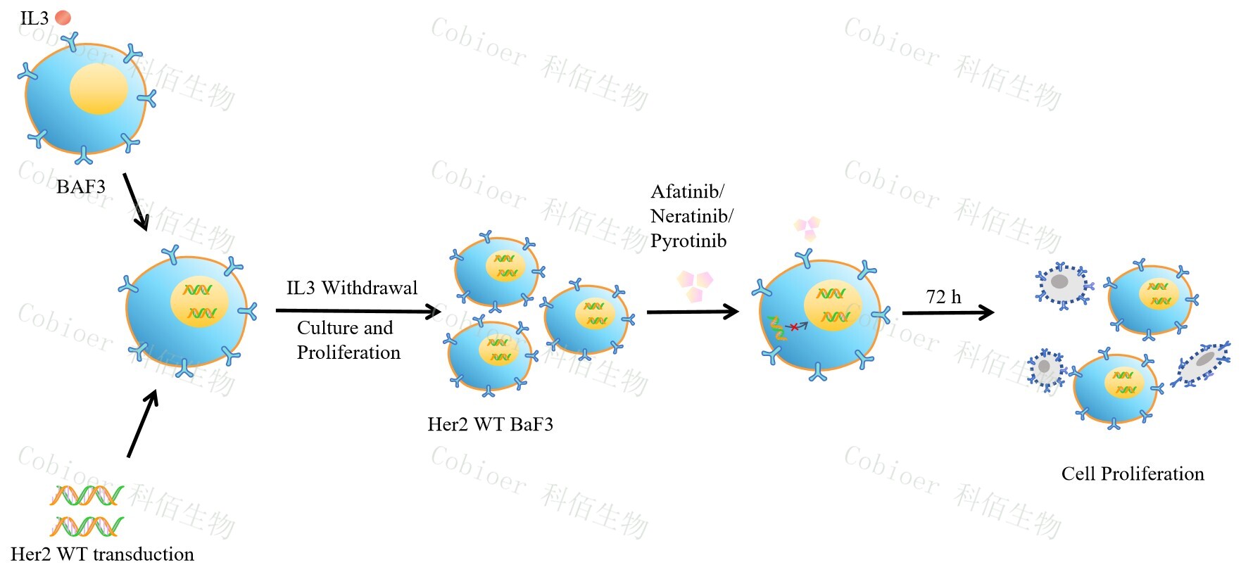 HER2 WT BaF3 藥靶細胞,通過轉(zhuǎn)導(dǎo) Her2 基因到 BaF3 細胞系中,穩(wěn)定 表達人突變形態(tài)下的 Her2 WT 基因。