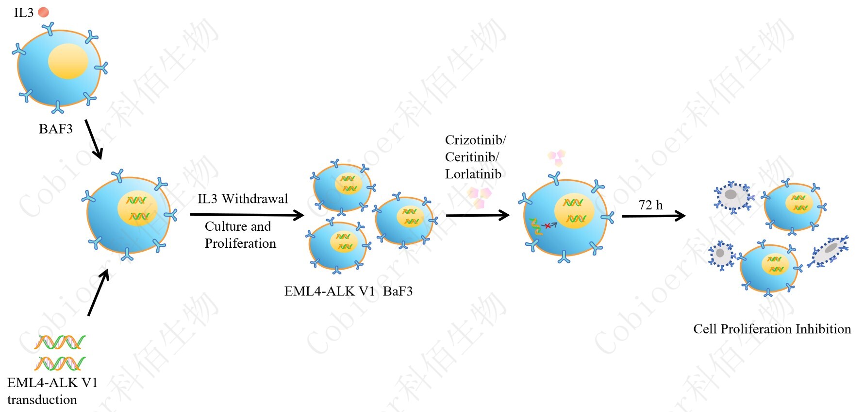 BaF3(小鼠原 B 細(xì)胞)的生長和增殖需要 IL-3 的維持。通過引入各種表達(dá)激酶的基因, 能作為 BaF3 的驅(qū)動(dòng)基因,讓 BaF3 不再依賴 IL-3 而增殖,進(jìn)而激酶基因成為 BaF3 增殖依 賴的驅(qū)動(dòng)基因,用于評估小分子藥物對激酶的靶向抑制作用,原理及流程見下圖所示。