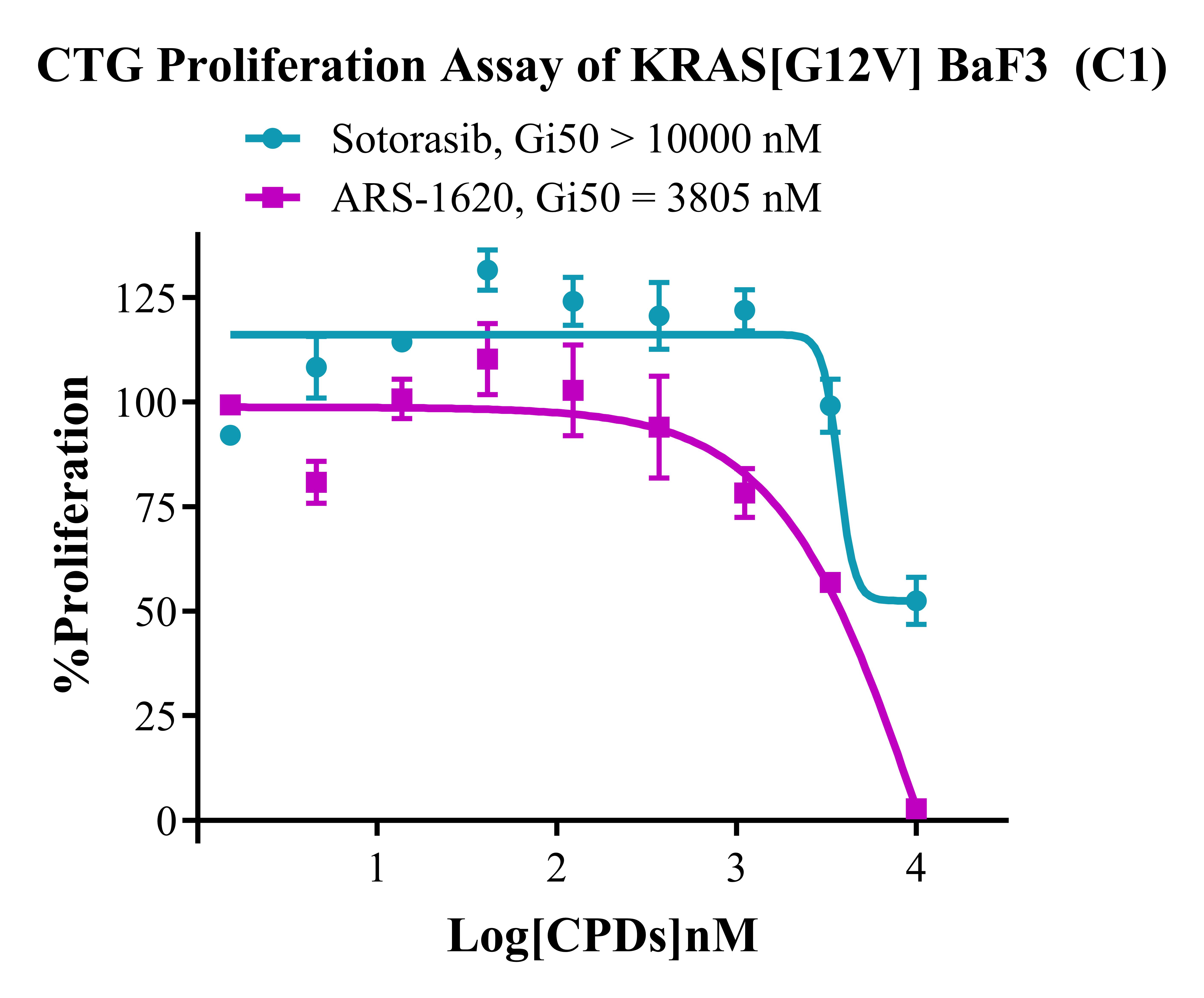 Figure 3. CTG Proliferation Assay of KRAS [G12V] BaF3(C1). |