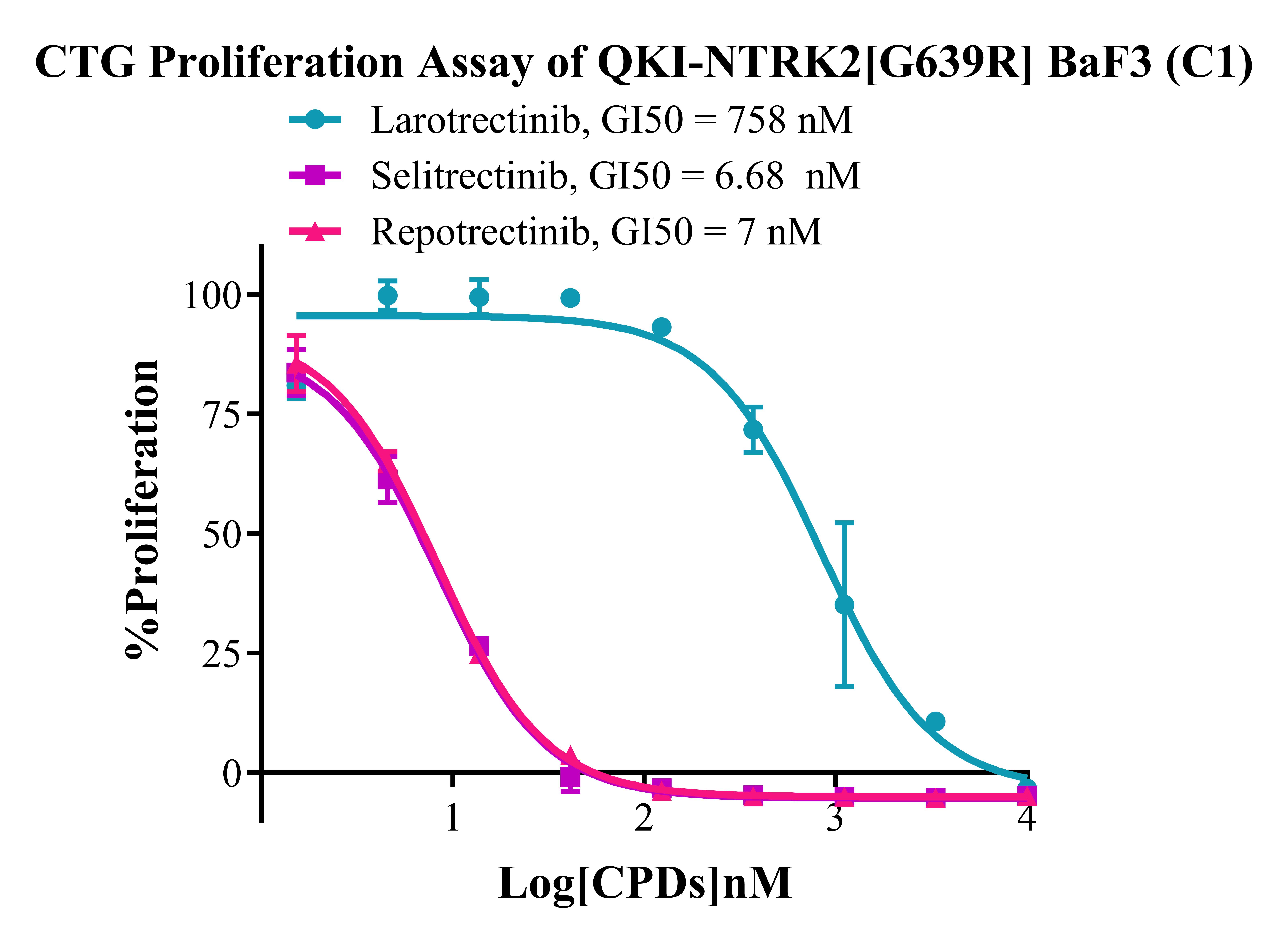 Figure 2. CTG Proliferation Assay of QKI-NTRK2 [G639R] BaF3 (C1). |