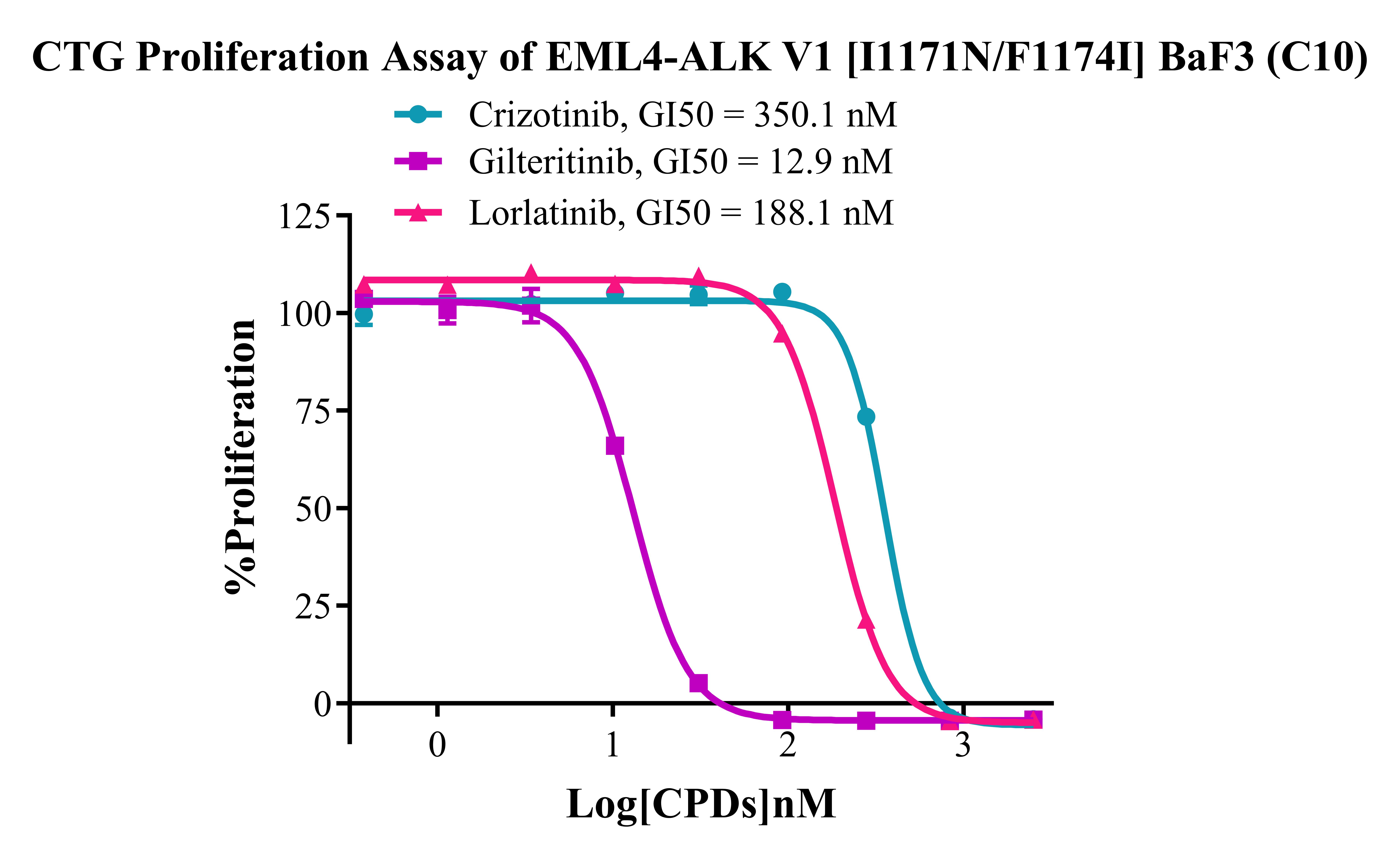 Figure 6. CTG Proliferation Assay of EML4-ALK V1 I1171N/F1174I BaF3(C10). |