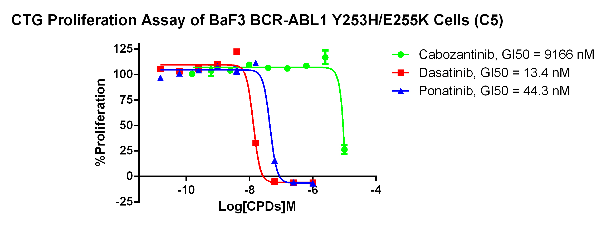 Figure 3. CTG Proliferation Assay of BaF3 BCR-ABL1 Y253H/E255K Cells (C5). |