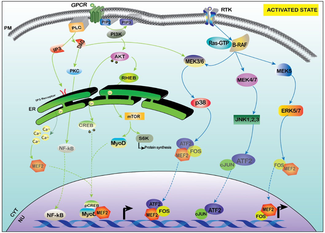 | Description: | pMEF2 RE-Luc is designed for monitoring the induction of The myocyte enhancer factor 2 .MEF2 transcription factor acts as a lynchpin in the transcriptional circuits that control cell differentiation and organogenesis. The spectrum of genes activated by MEF2 in different cell types depends on extracellular signaling and on co-factor interactions that modulate MEF2 activity. Recent studies have revealed MEF2 to form an intimate partnership with class IIa histone deacetylases, which together function as a point of convergence of multiple epigenetic regulatory mechanisms. We review the myriad roles of MEF2 in development and the mechanisms through which it couples developmental, physiological and pathological signals with programs of cell-specific transcription. |