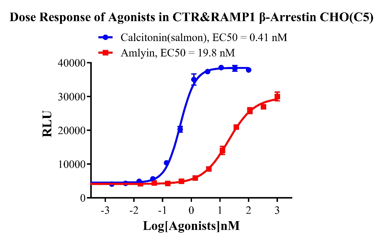 Figure 2. Dose response of Agonists in CTR&RAMP1 β-Arrestin CHO(C5).