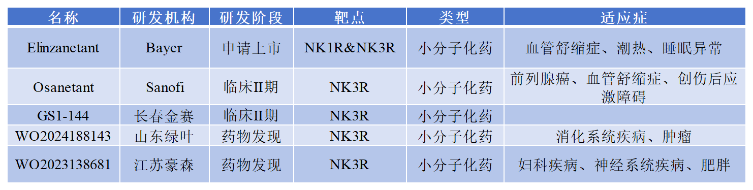 Fezolinetant(非唑奈坦)是全球首個(gè)可口服的非激素類NK3R拮抗劑,用于治療因絕經(jīng)引起的中度至重度血管舒縮癥狀(VMS)。2024年12月22日,長(zhǎng)春金賽藥業(yè)旗下產(chǎn)品GS1-144開展治療絕經(jīng)期血管舒縮癥的二期臨床試驗(yàn)。