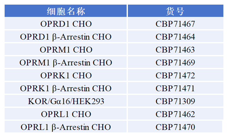 針對(duì)OPR及相關(guān)信號(hào)通路藥物的檢測(cè),科佰生物及時(shí)開發(fā)了OPRM1,OPRD1,OPRK1,及OPRL1等細(xì)胞模型,助力OPR藥物的研發(fā)。