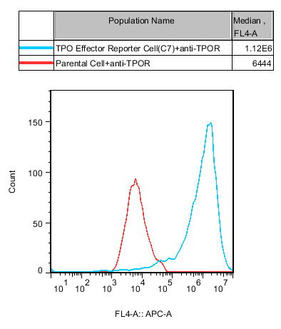 TPO Effector Reporter Cell 報告基因藥靶模型很好的模擬了體內(nèi) TPO 的信號轉(zhuǎn)導(dǎo)過程, 原理見下圖所示。![]() Figure 1. TPO Effector Reporter Cell 細(xì)胞模型原理圖 |