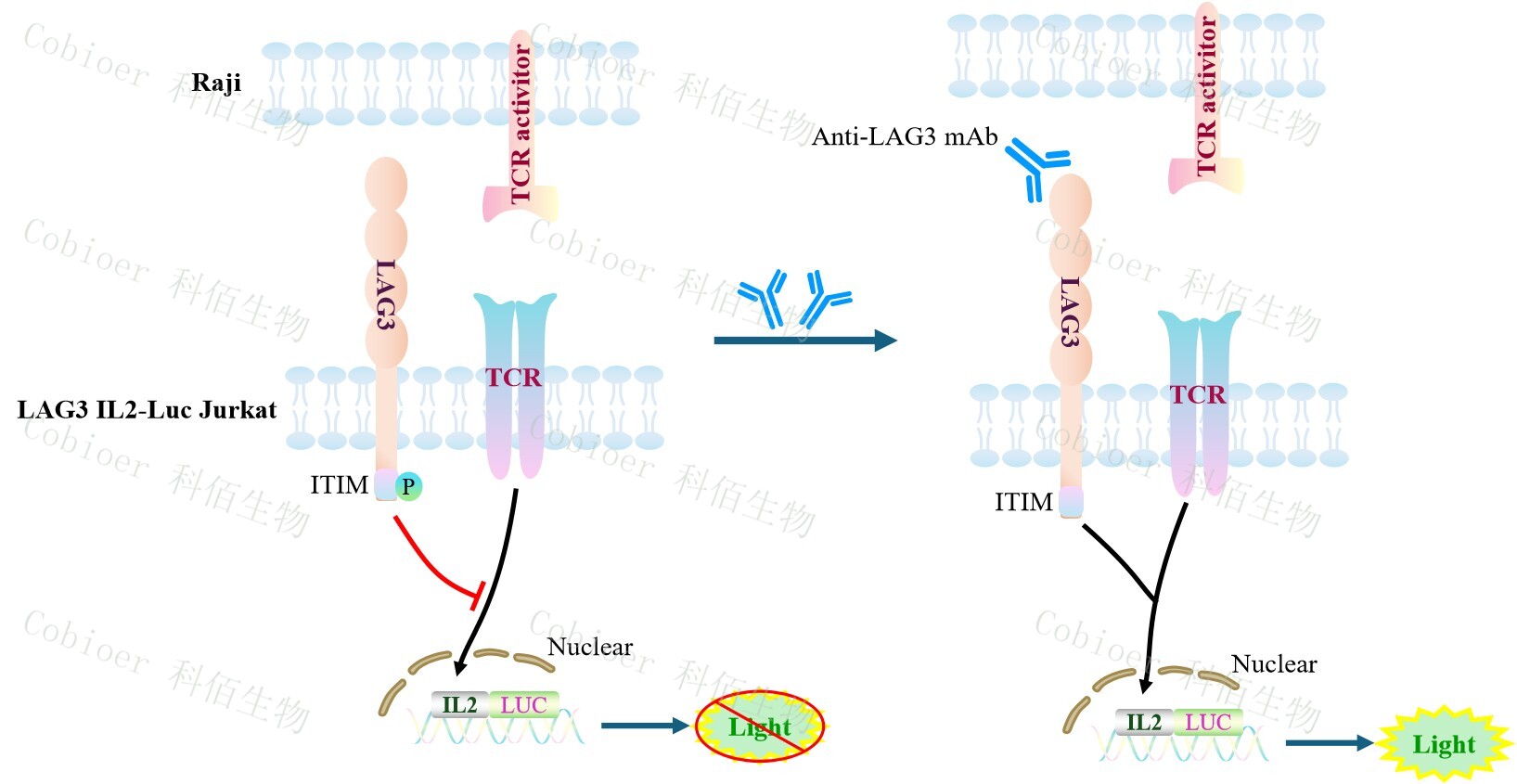 Figure 1. LAG3 IL2-Luc Jurkat 細(xì)胞模型原理圖