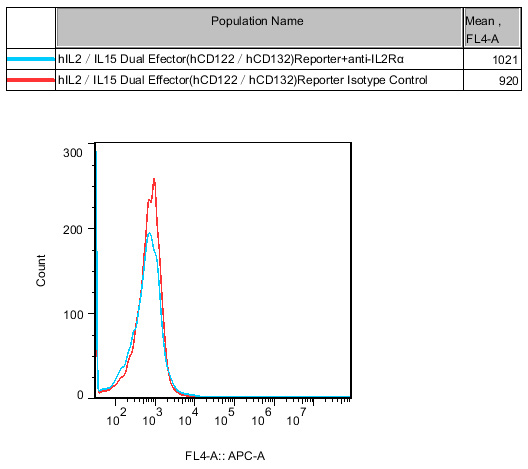 Figure 3. Recombinant hIL2/IL15 Dual Effector(hCD122/hCD132) Reporter Cell constitutively expressing IL2Rβ. |
