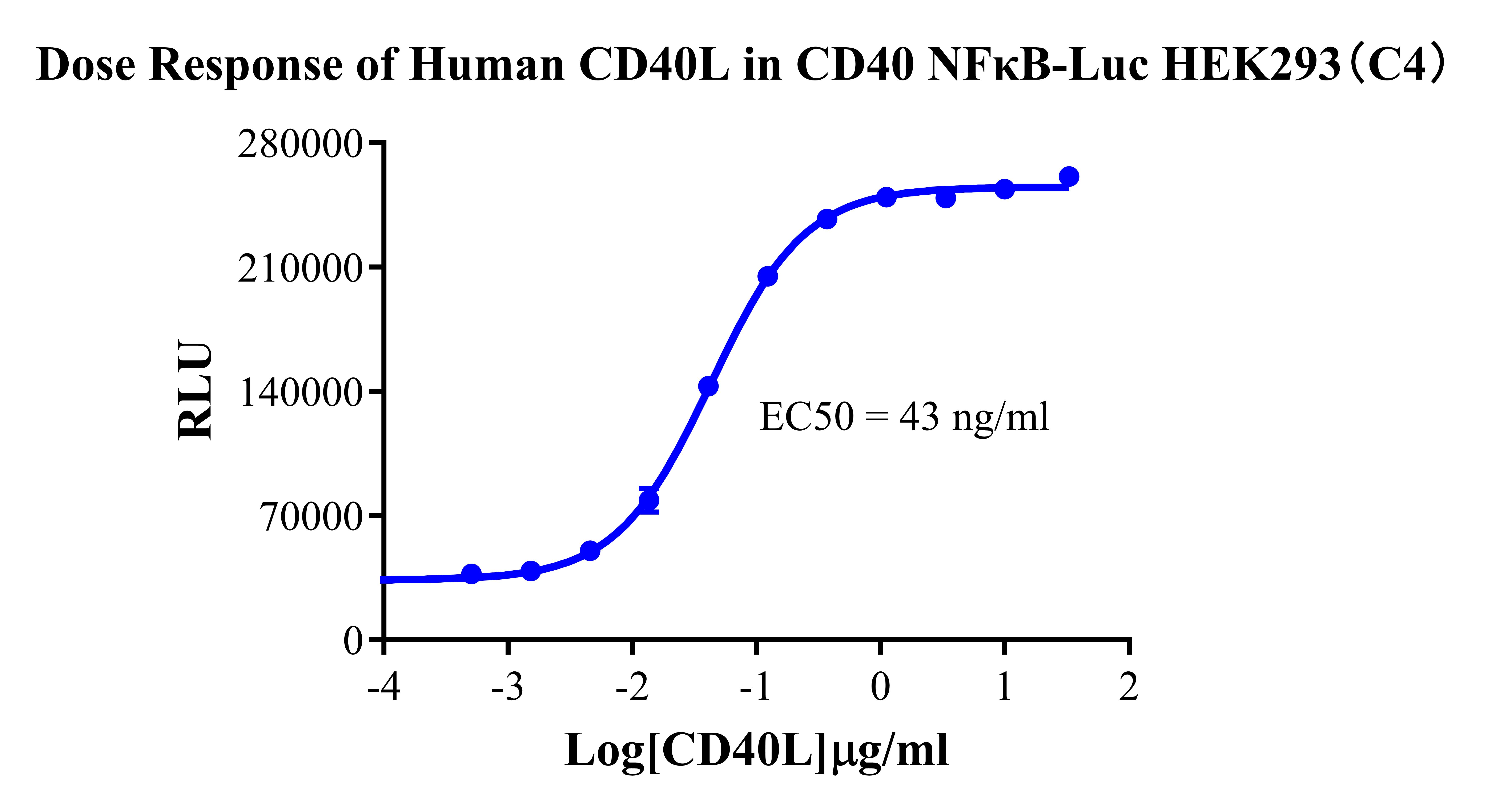 | CD40 是腫瘤壞死因子受體超家族(TNFRSF)成員,作為免疫調(diào)節(jié)的關(guān)鍵分子,廣泛 參與 B 細胞活化、抗原呈遞細胞(APC)成熟及 T 細胞免疫應(yīng)答。其配體 CD40L(CD154) 主要表達于活化的 T 細胞,通過 CD40-CD40L 互作橋接先天性與適應(yīng)性免疫,是腫瘤免疫 治療、自身免疫病及感染性疾病的熱門靶點。 CD40 信號轉(zhuǎn)導(dǎo)主要利用 TNF 受體相關(guān)因子的銜接蛋白,導(dǎo)致經(jīng)典和非經(jīng)典 NFκB 通 路、MAPK、PI3K 和 PLCγ的激活。它們的激活導(dǎo)致特征性下游效應(yīng),包括轉(zhuǎn)錄激活、細 胞骨架重排和細胞存活。 |