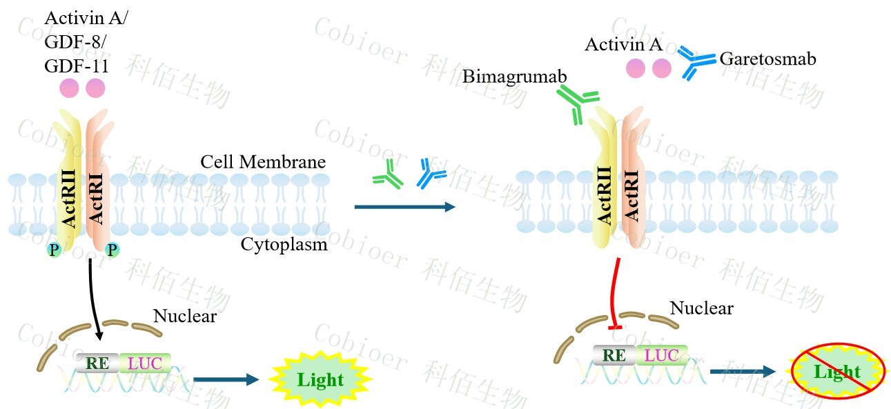 Activin A Effector Reporter Cell 報告基因藥靶模型很好的模擬了體內 Activin A 的信號轉導過程,原理見下圖所示。![]() Figure 1. Activin A Effector Reporter Cell 細胞模型原理圖 |