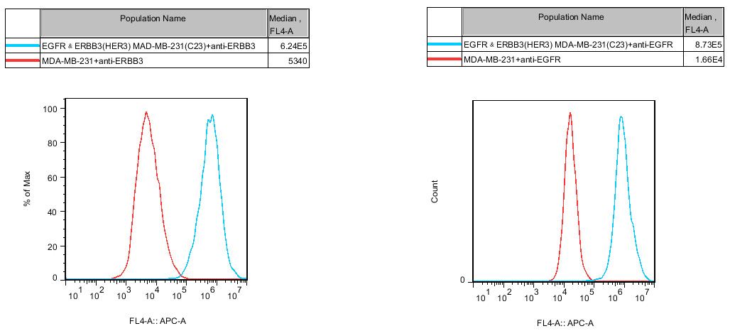 IV. Representative Data![]() Figure 1. Recombinant EGFR&ERBB3(HER3) MDA-MB-231 constitutively expressing EGFR&ERBB3. |