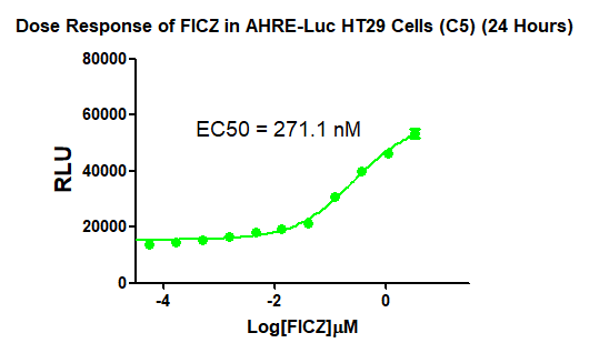 Figure 2. Dose Response of FICZ in AHRE-Luc HT29 Cells (C5) (24 Hours). |