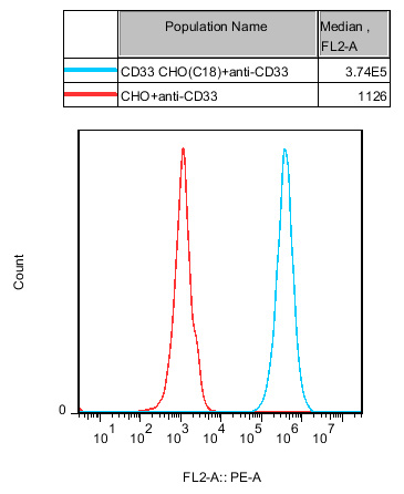 | CD33 CHO 細胞,在 CHO-K1 細胞的基礎(chǔ)上,穩(wěn)定表達人 CD33。 | |