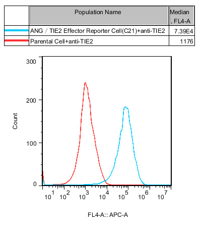 ANG/TIE2 Effector Reporter Cell 報告基因藥靶模型很好的模擬了體內 ANG/TIE2 的信 號轉導過程,原理見下圖所示。![]() Figure 1. ANG/TIE2 Effector Reporter Cell 細胞模型原理圖
