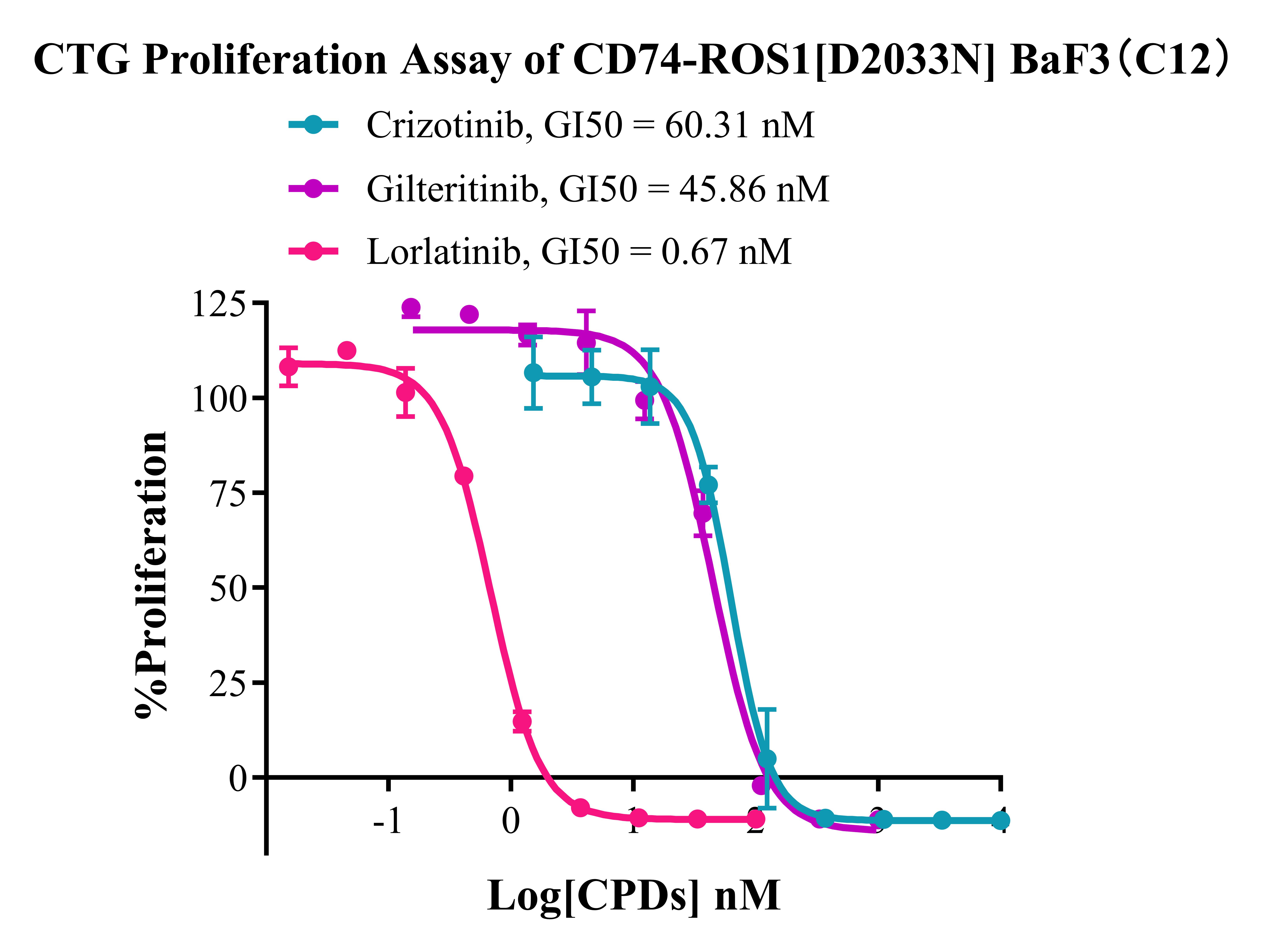 Figure 4. CTG Proliferation Assay of CD74-ROS1[D2033N] BaF3(C12).