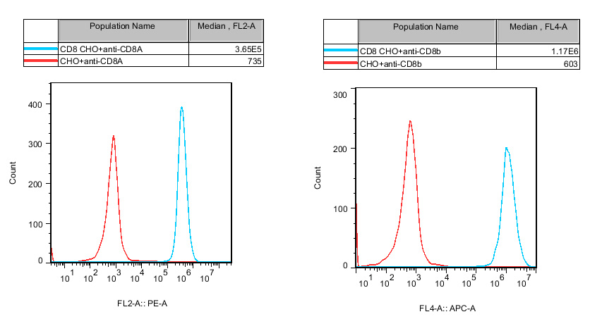 | CD8 CHO 細(xì)胞,在 CHO-K1 細(xì)胞的基礎(chǔ)上,穩(wěn)定表達(dá)人 CD8。 | |