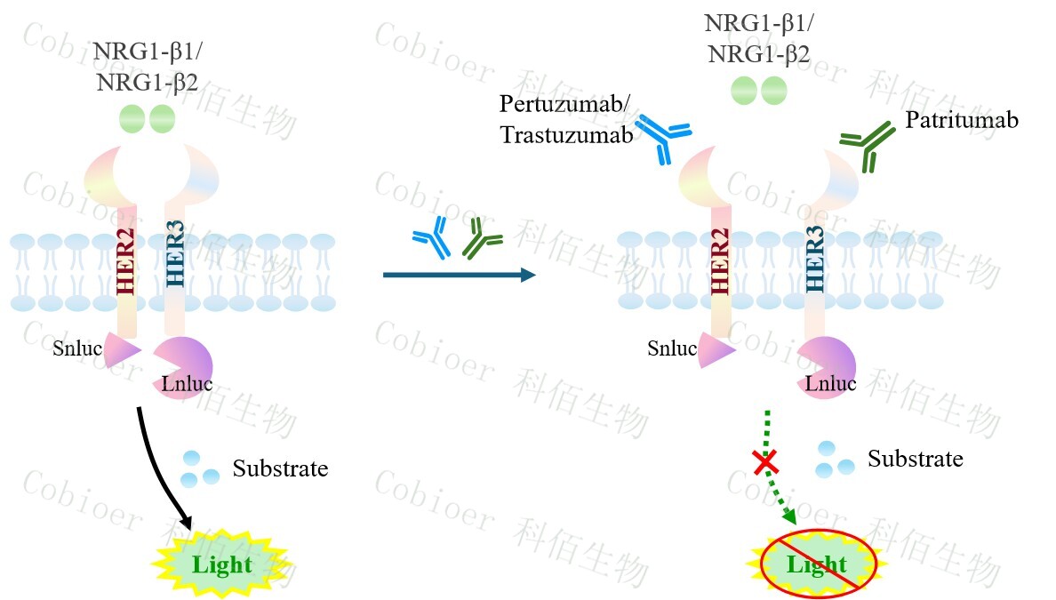 ERBB2&ERBB3 Dimerization CHO 報告基因藥靶模型很好的模擬了體內(nèi) ERBB2&ERBB3 的信號轉(zhuǎn)導過程,原理見圖所示。![]() Figure 1. ERBB2&ERBB3 Dimerization CHO 細胞模型原理圖 |