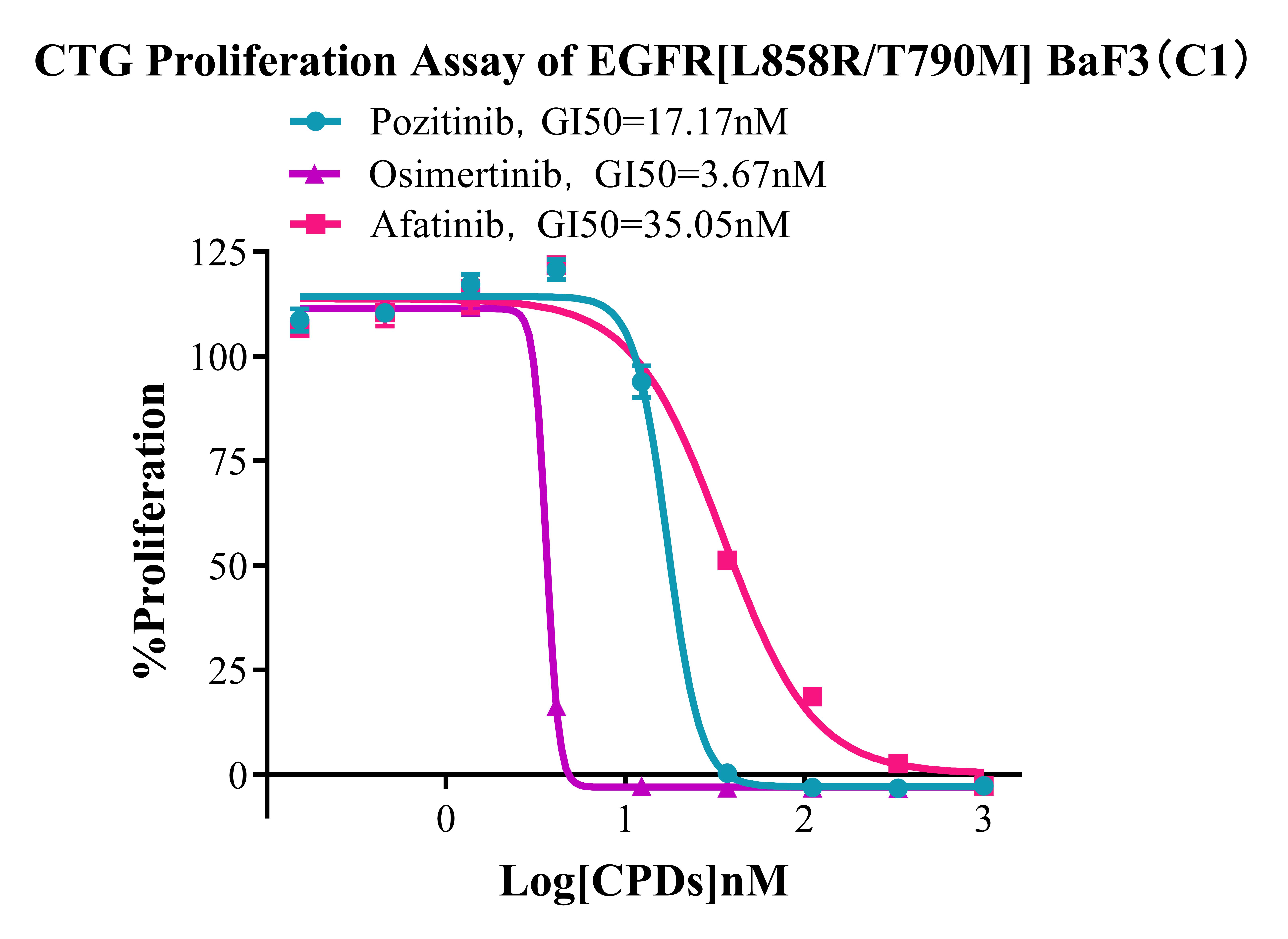 Figure 4. CTG proliferation Assay of EGFR [L858R/T790M]BaF3(C1). |