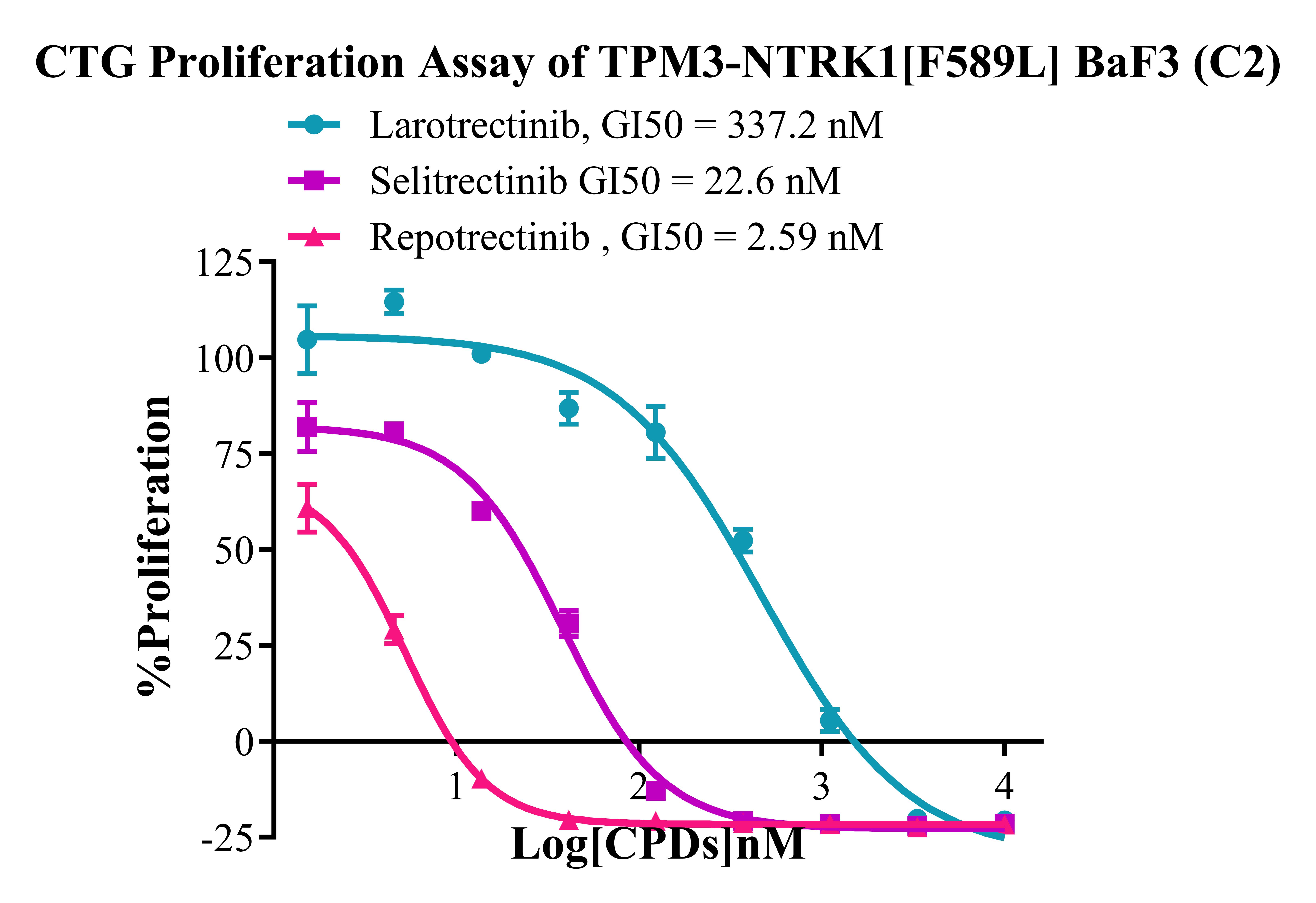 Figure 2. CTG Proliferation Assay of TPM3-NTRK1 [F589L]/BaF3 BaF3(C2). |