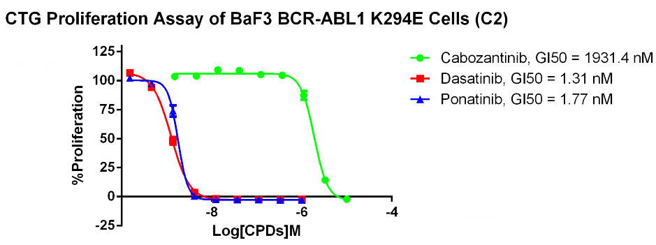 Figure 4. CTG Proliferation Assay of BaF3 BCR-ABL1 K294E Cells (C2).