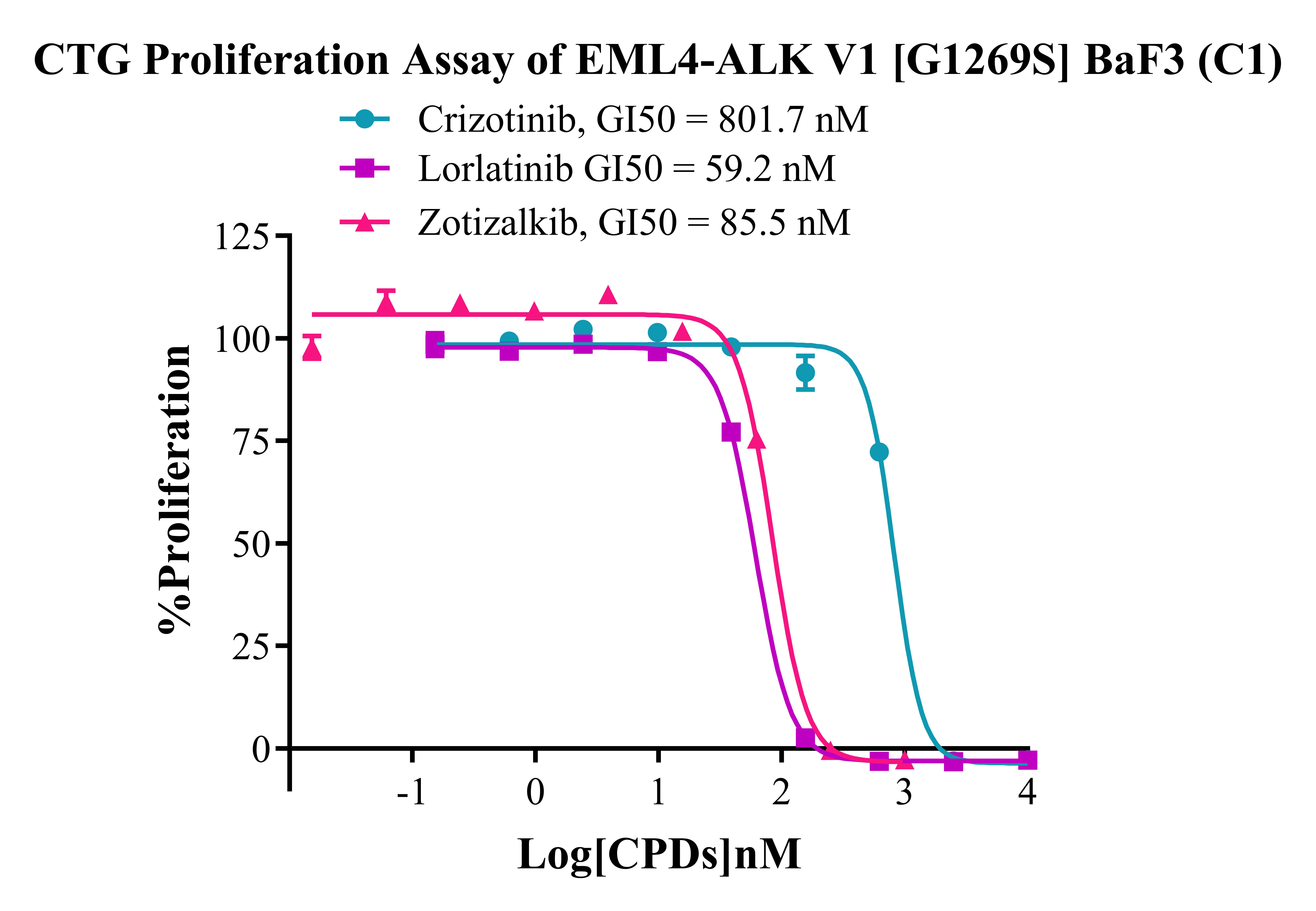 Figure 4. CTG Proliferation Assay of EML4-ALK V1 [G1269S]  BaF3(C1).