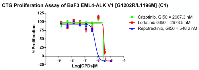 我們結(jié)合自己多年在細(xì)胞領(lǐng)域的豐富經(jīng)驗(yàn),在 Ba/F3(小鼠原B細(xì)胞)上進(jìn)行改造,引入相應(yīng)表達(dá)激酶基因,這些基因能作為Ba/F3的驅(qū)動基因,讓Ba/F3不再依賴IL-3而增殖,進(jìn)而激酶基因成為Ba/F3增殖依賴的驅(qū)動基因,用于評估小分子藥物對激酶的靶向抑制作用。