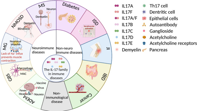 IL-17 細(xì)胞因子參與多種免疫調(diào)節(jié),對(duì)自身免疫性疾病及免疫相關(guān)疾?。ㄈ缍喟l(fā)性硬化癥、視神經(jīng)脊髓炎譜系疾病、重癥肌無(wú)力、吉蘭-巴雷綜合征和急性播散性腦脊髓炎)以及非神經(jīng)免疫性疾病中的炎癥和病理過程產(chǎn)生影響。